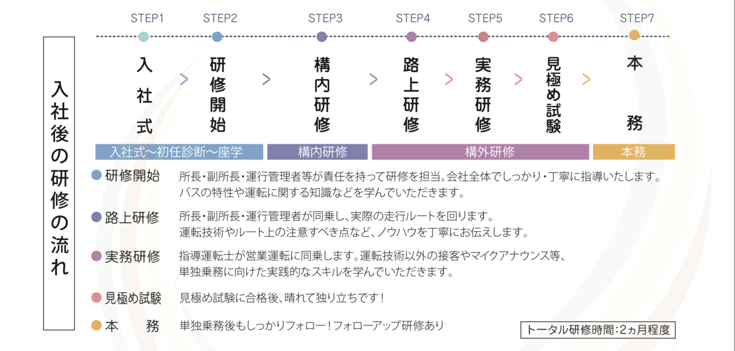 の方ですと単独乗務まで合計2ヵ月程度を予定して